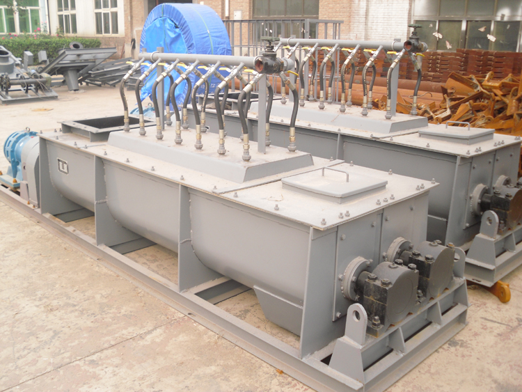6.雙軸攪拌機(jī)設(shè)有加濕噴水系統(tǒng),保證噴水均勻,調(diào)節(jié)供水量來滿足需要。