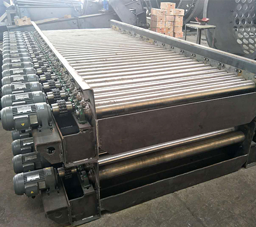 輥篩是針對物料在輸送過程中由于物料含有粘性,較小顆粒粘附在篩盤上導致篩盤不能正常的運轉(zhuǎn),從而導致物料不能正常輸送,并且造成篩隙堵塞的基礎(chǔ)上設(shè)計制造的運輸篩分特殊設(shè)備。